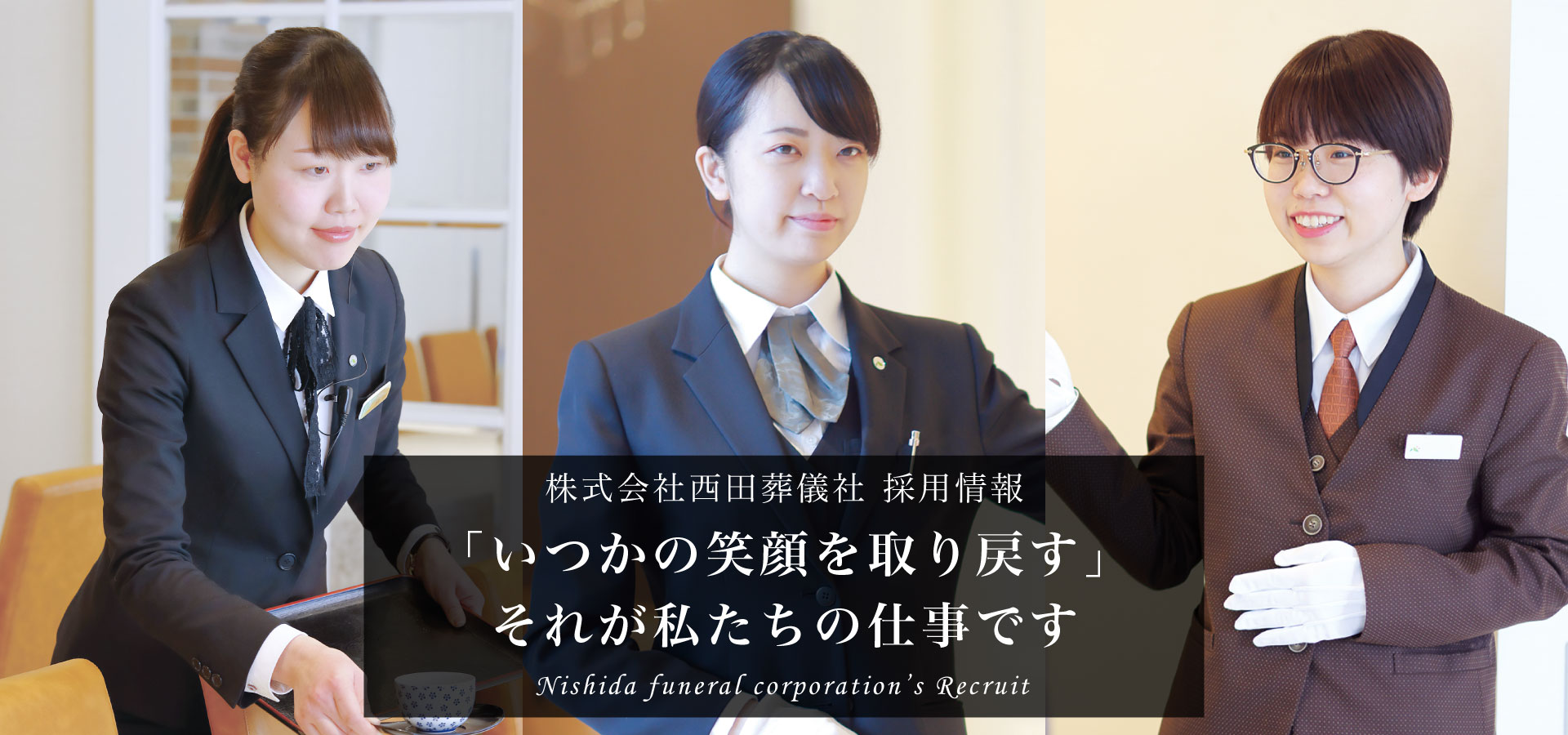 西田葬儀社は「誰かのために何かをしたい」という思いのもと、相手に尽くすことが自分の幸せであると捉え、お客様の想像と期待の先にある感動の創造をめざしています。