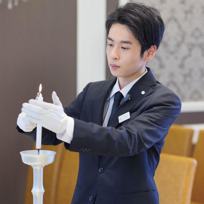 式場の準備から設営、葬具の手入れや式典の補佐のお仕事です。